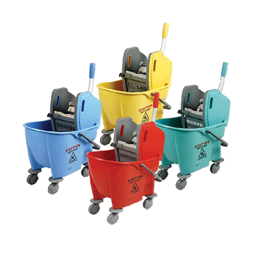 Equipped with 3" caster wheels, protective bumpers and sturdy down-press wringer.